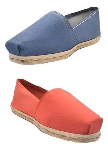 Pack de alpargatas iberia con modelos de mezclilla y otro de color terracota con un rango de talla 34 a 39.