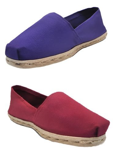Pack de alpargatas iberia con modelos morado y otro burdeo con un rango de talla 34 a 39.