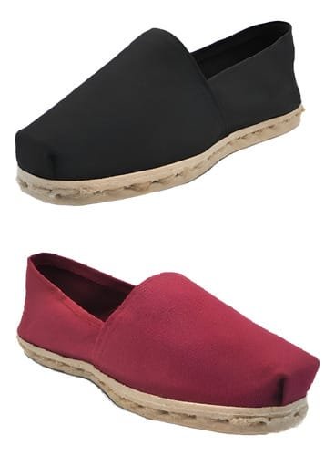 Pack de alpargatas iberia con modelos de color negro y otro de color burdeo con un rango de talla 34 a 42.