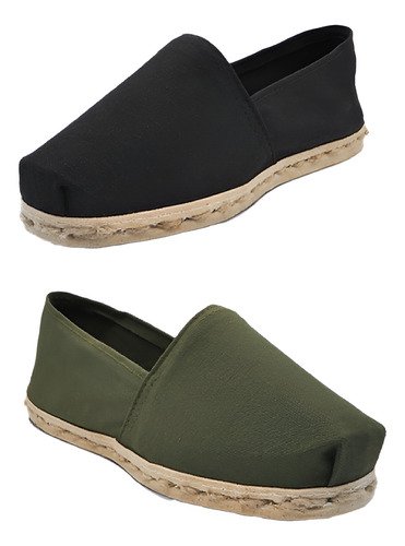 Pack de alpargatas iberia con modelos de color negro y otro de color verde militar con un rango de talla 34 a 42.