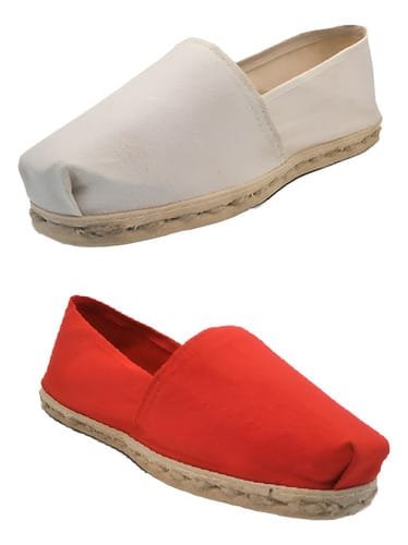Pack de alpargatas iberia con modelos de color rojo y otro de color crudo con un rango de talla 34 a 39.