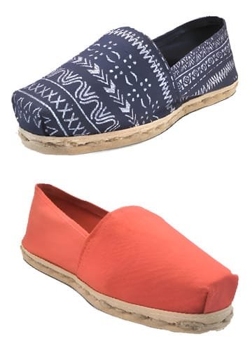 Pack de alpargatas iberia con modelos terracota y otro azul etnico con un rango de talla 34 a 39.