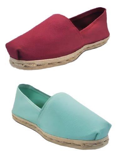 Pack de alpargatas iberia con modelos turquesa y otro burdeo con un rango de talla 34 a 39.