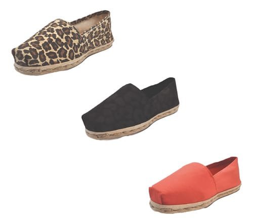 TriPack de alpargata iberia con modelos animal print, animal print negro y terracota con un rango de talla de 34 a 39.
