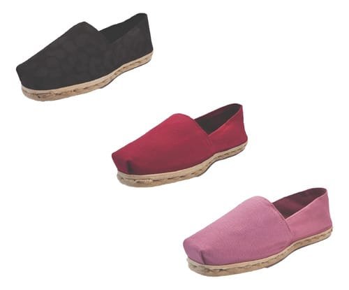 TriPack de alpargata iberia con modelos animal print negro, burdeo y jacarandá con un rango de talla de 34 a 39.
