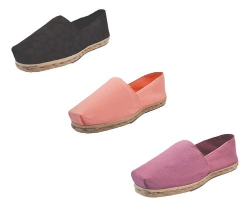 TriPack de alpargata iberia con modelos animal print negro, coral y jacarandá con un rango de talla de 34 a 39.