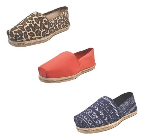 TriPack de alpargata iberia con modelos animal print, terracota y azul étnico con un rango de talla de 34 a 39.