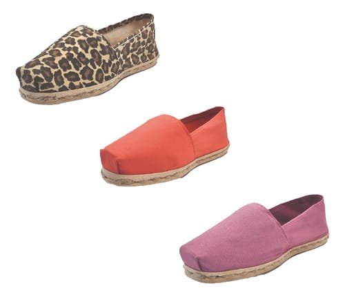 TriPack de alpargata iberia con modelos animal print, terracota y jacarandá con un rango de talla de 34 a 39.