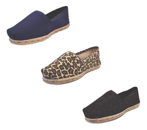TriPack de alpargata iberia con modelos azul marino, ani print y ani print neg con un rango de talla de 34 a 39.