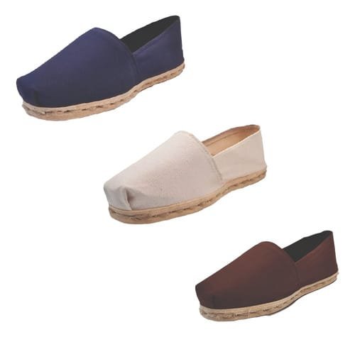 TriPack de alpargata iberia con modelos azul marino, crudo y cafe con un rango de talla de 34 a 42.