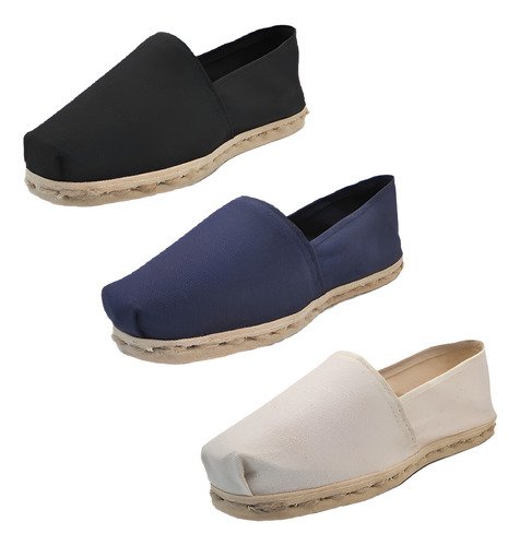 TriPack de alpargata iberia con modelos azul marino, crudo y negro con un rango de talla de 34 a 44.