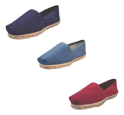 TriPack de alpargata iberia con modelos azul marino, mezclilla y burdeo con un rango de talla de 34 a 42.