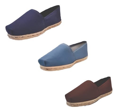 TriPack de alpargata iberia con modelos azul marino, mezclilla y cafe con un rango de talla de 34 a 42.