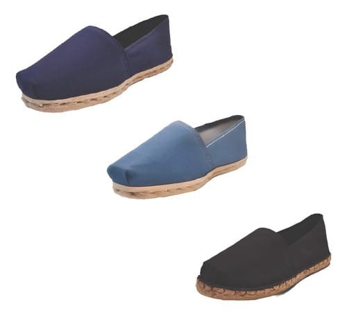 TriPack de alpargata iberia con modelos azul marino, mezclilla y negro goma con un rango de talla de 34 a 39.