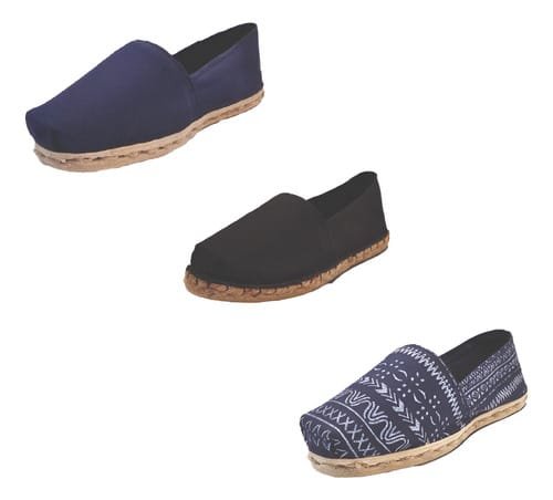 Tripack Alpargata Azul Marino, Negro Goma Y Azul Étnico