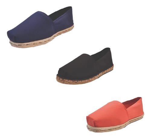 TriPack de alpargata iberia con modelos azul marino, negro goma y terracota con un rango de talla de 34 a 39.