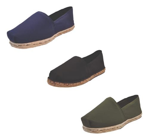 TriPack de alpargata iberia con modelos azul marino, negro goma y verde militar con un rango de talla de 34 a 42.