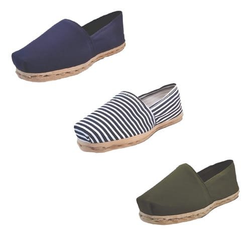TriPack de alpargata iberia con modelos azul marino, ray azul/blanco y verde mili con un rango de talla de 34 a 39.