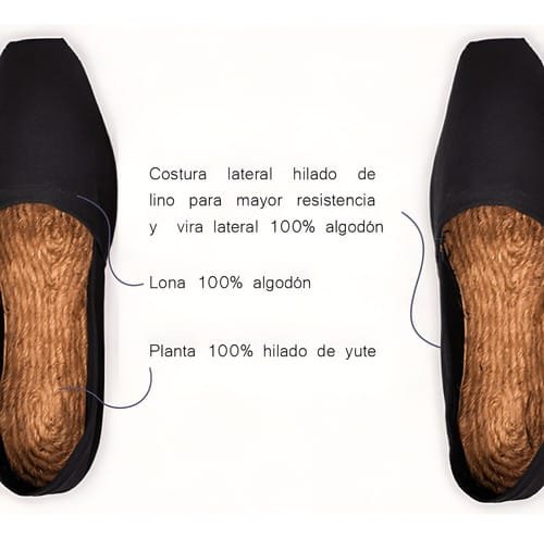 Alpargatas IBERIA de fabricación nacional desde 1953. PRODUCTO TOTALMENTE ECOLÓGICO: elaborado con materias 100% naturales y calidad en toda su confección: