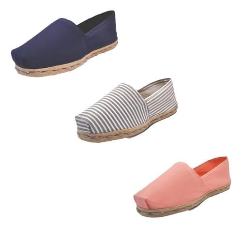 TriPack de alpargata iberia con modelos azul marino, ray gris/blanco y coral con un rango de talla de 34 a 39.