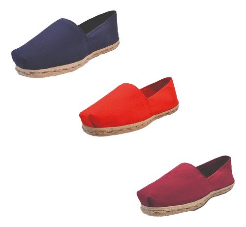TriPack de alpargata iberia con modelos azul marino, rojo y burdeo con un rango de talla de 34 a 39.