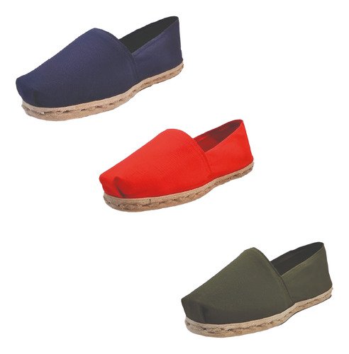 TriPack de alpargata iberia con modelos azul marino, rojo y verde militar con un rango de talla de 34 a 39.