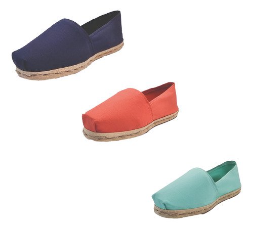 TriPack de alpargata iberia con modelos azul marino, terracota y turquesa con un rango de talla de 34 a 39.