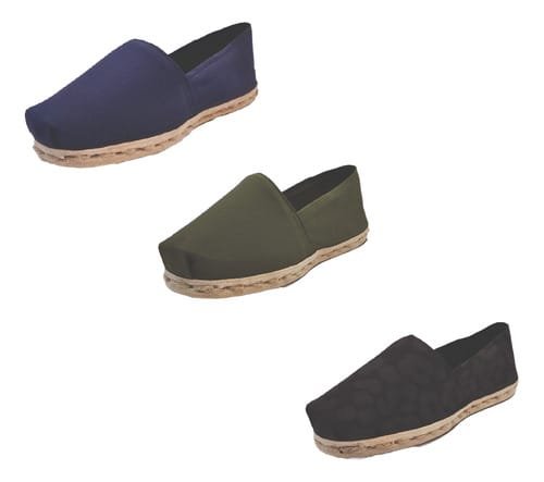 TriPack de alpargata iberia con modelos azul marino, verde militar y ani pr neg con un rango de talla de 34 a 39.