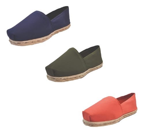TriPack de alpargata iberia con modelos azul marino, verde militar y terracota con un rango de talla de 34 a 39.