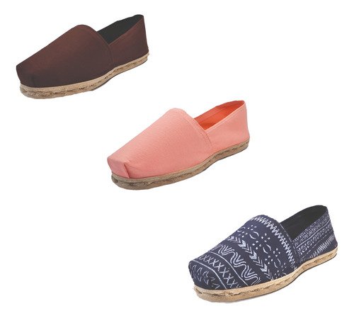 Tripack Alpargata Café, Coral Y Azul Étnico