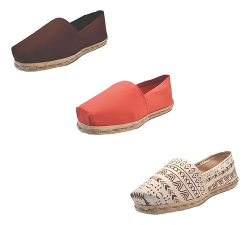 TriPack de alpargata iberia con modelos café, terracota y crudo étnico con un rango de talla de 34 a 39.