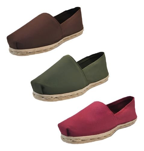 TriPack de alpargata iberia con modelos café, verde militar y burdeo con un rango de talla de 34 a 42.
