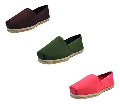 TriPack de alpargata iberia con modelos café, verde militar y terracota con un rango de talla de 34 a 39.