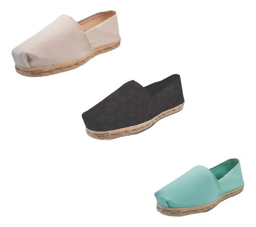 TriPack de alpargata iberia con modelos crudo, animal print negro y turquesa con un rango de talla de 34 a 39.