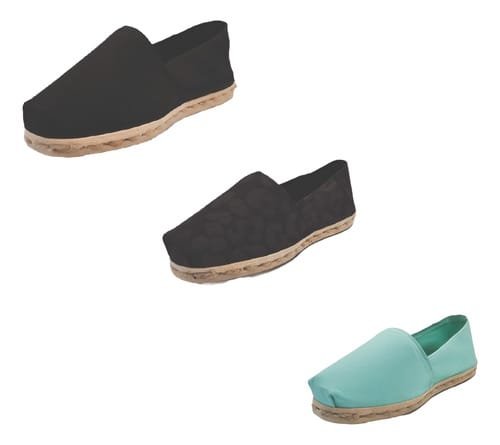 TriPack de alpargata iberia con modelos negro, animal print negro y turquesa con un rango de talla de 34 a 39.