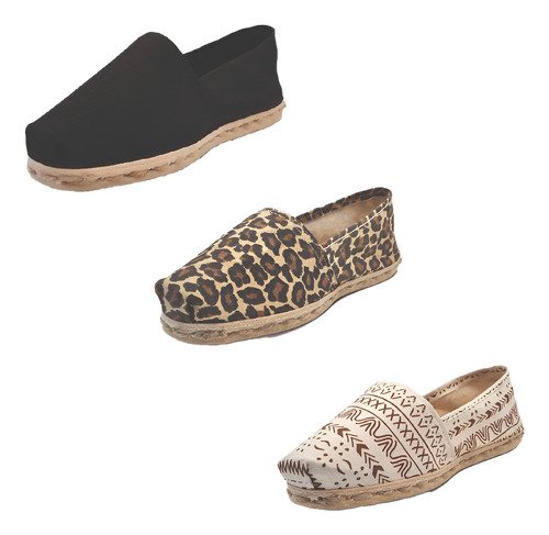 Tripack Alpargata Negro, Animal Print Y Crudo Étnico