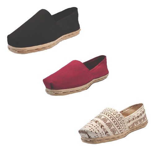 Tripack Alpargata Negro, Burdeo Y Crudo Étnico