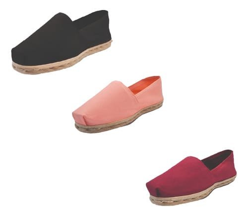 TriPack de alpargata iberia con modelos negro, coral y burdeo con un rango de talla de 34 a 39.
