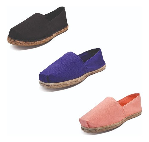 Tripack Alpargata Negro Goma, Morado Y Coral