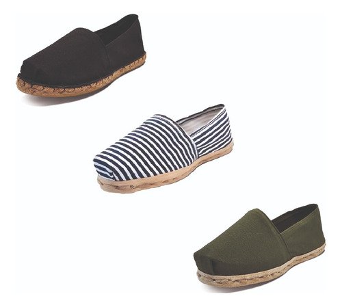 Tripack Alpargata Negro Goma, Ray Azul/bla Y Verde Militar