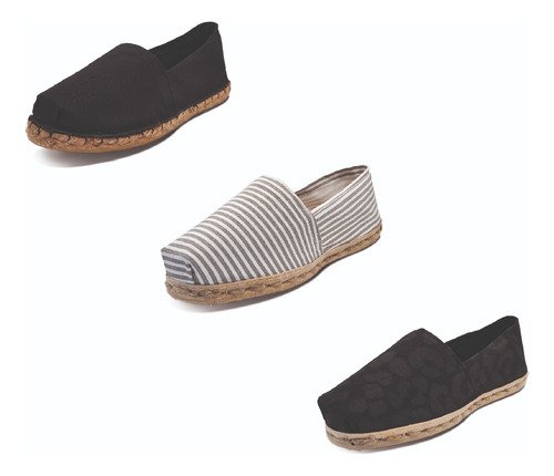 Tripack Alpargata Negro Goma, Ray Gris/bla Y Animal Pr Neg