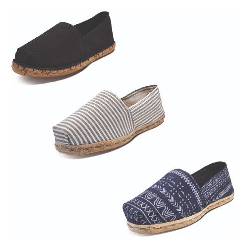 Tripack Alpargata Negro Goma, Ray Gris/blanco Y Azul Étnico