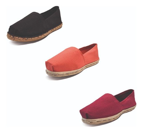 Tripack Alpargata Negro Goma, Terracota Y Burdeo