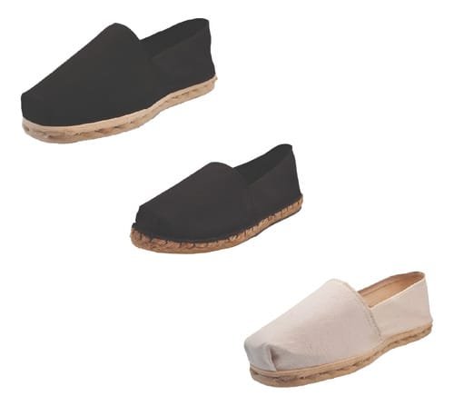 TriPack de alpargata iberia con modelos negro, negro refuerzo goma y crudo con un rango de talla de 34 a 42.