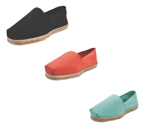 TriPack de alpargata iberia con modelos negro, terracota y turquesa con un rango de talla de 34 a 39.