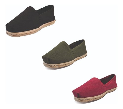 TriPack de alpargata iberia con modelos negro, verde militar y burdeo con un rango de talla de 34 a 42.