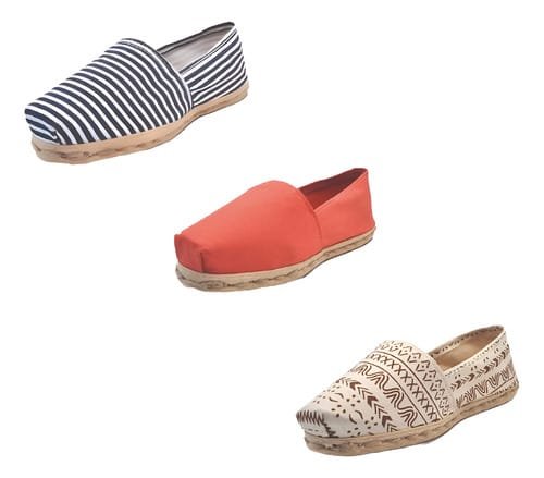 TriPack de alpargata iberia con modelos ray azul/blan, terracota y crudo étnico con un rango de talla de 34 a 39.
