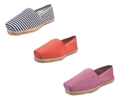 TriPack de alpargata iberia con modelos ray azul/blan, terracota y jacarandá con un rango de talla de 34 a 39.