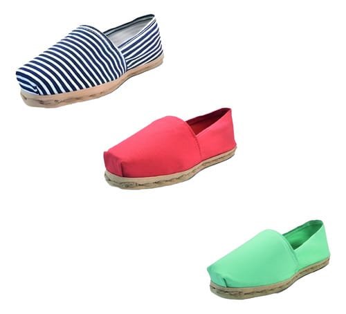 TriPack de alpargata iberia con modelos ray azul/blan, terracota y turquesa con un rango de talla de 34 a 39.