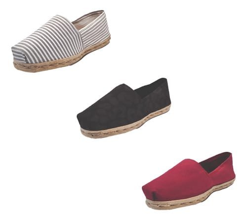 TriPack de alpargata iberia con modelos ray gris/blan, animal print negro y burdeo con un rango de talla de 34 a 39.